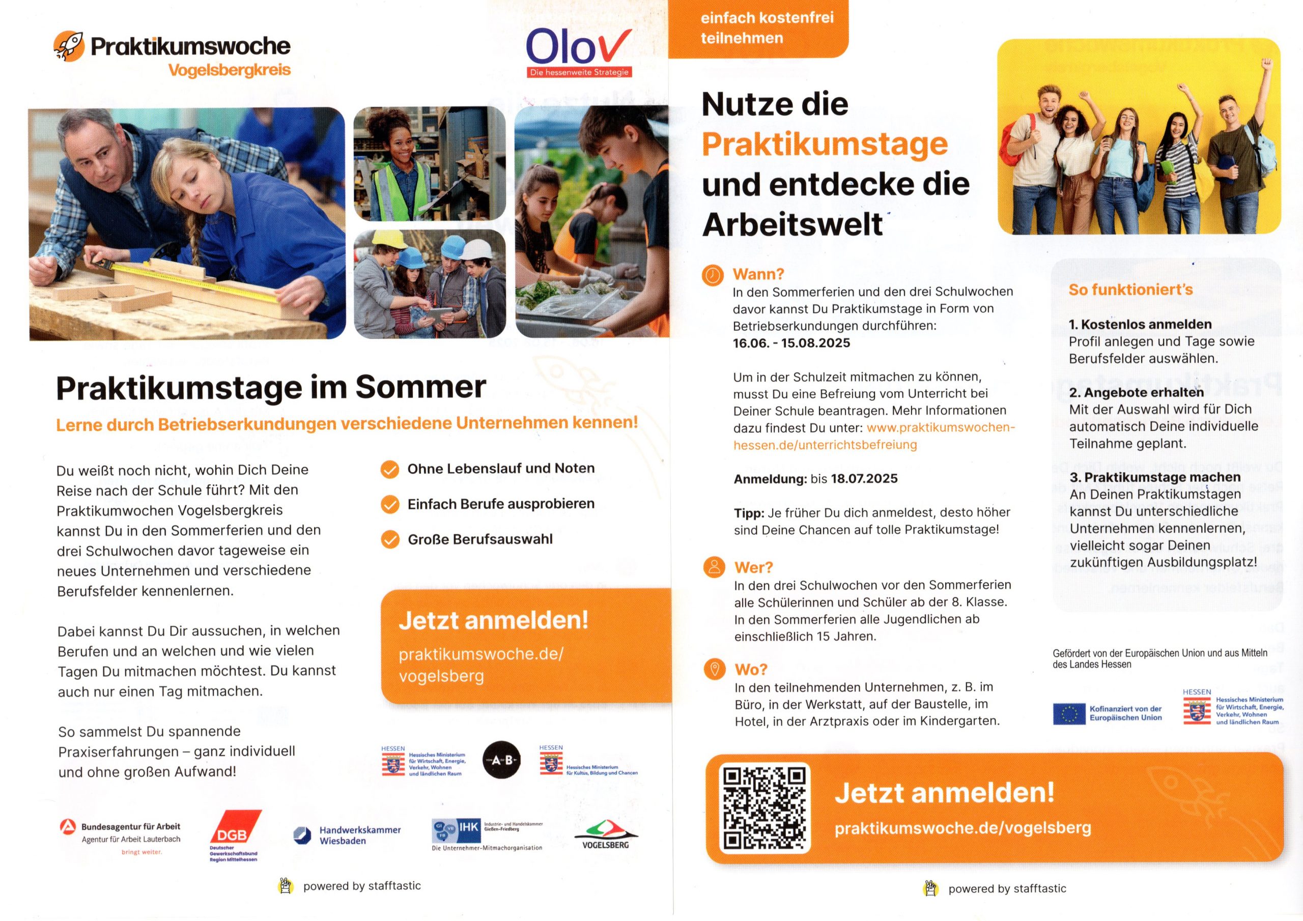 Zielgruppe sind alle Schülerinnen und Schüler der Vogelsberger Vorabschluss- und Abschlussklassen sowie deren Lehrkräfte.