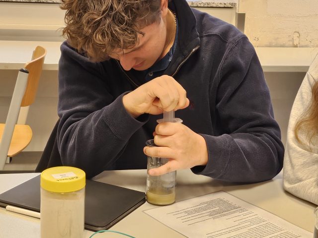 Am nächsten Tag standen Experimente zur Gewässerreinigung auf dem Programm. In Kleingruppen probierten die Jugendlichen verschiedenste Methoden aus und stellten fest, wie aufwendig es ist, verunreinigtes Wasser wieder sauber zu bekommen. Der darauffolgende Tag führte die Gruppe zum Biologikum Mittelhessen des Forschungszentrums Neu-Ulrichstein, wo sie Gewässerproben untersuchten, Arten bestimmten und erfuhren, wie empfindlich aquatische Lebensräume auf Veränderungen reagieren.