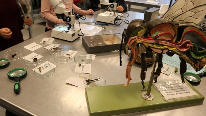 Großen Andrang fand das Angebot im IT-Bereich. Im Workshop Digitale Welt konnten die angehenden Fünftklässler Handys oder Festplatten auseinanderbauen und Roboter zum Laufen bringen. In gleich drei Räumen konnten sich die Interessierten musikalisch betätigen. Mit Hilfe der Alsfelder Musikschule präsentierte die Albert-Schweitzer-Schule ihr großes musikalisches Repertoire, das für die neuen Schülerinnen und Schüler mit einem Einstieg in der Bläserklasse beginnen kann. Ein weiterer Anziehungspunkt war das Schullabor. Hier warteten neben Stabheuschrecken und Regenwürmern viele interessante Tiere auf die Gäste, die auch Samenbomben herstellen und mit nachhause nehmen konnten. Auch die Schulgesundheitsfachkraft Christina Hädrich konnten Kinder und Eltern in ihrem Raum bereits kennenlernen. Sie leitet auch die AG Schulsanitätsdienst.