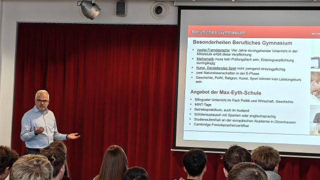 Neben den Bildungswegen kamen auch Themen wie Aufnahmebedingungen, Bewerbungsfristen und Informationsangebote zur Sprache. Beide Experten betonten, wie wichtig es sei, sich gerade in der zehnten Klasse intensiv mit den eigenen Möglichkeiten zu beschäftigen. Zum Abschluss luden Stein, Rausch und Walther die Schülerinnen und Schüler daher ein, auch selbst aktiv zu werden, schließlich gehe es um die eigene Zukunft. Eine weitere Möglichkeit dazu bieten unter anderem die Berufsberatung mit Michael Rausch an den Schulen, Schnuppertage oder Veranstaltungen wie die Tage der Ausbildung des Vogelsbergkreises vom 24. bis 28. November 2025 und der Infotag an der Max-Eyth-Schule am 4. Dezember. Die Max-Eyth-Schule lädt außerdem zu Schnuppertagen nach Vereinbarung ein.