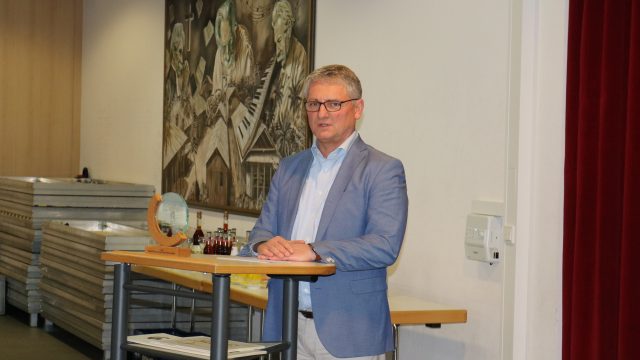 Schulleiter Christian Bolduan zeigte sich „überwältigt“ von dem Erfolg der AG und dankte in seiner Begrüßung allen Beteiligten, insbesondere Kursleiter Dr. Florian Meister und Förster Tobias Behlen von HessenForst, dem Kooperationspartner der Schule. Sein Dank galt außerdem den Schülerinnen und Schülern der AG sowie der RhönEnergie, die den Preis zum zweiten Mal ausgelobt hatte. Sie wurde vor Ort vertreten durch das Team der Unternehmenskommunikation mit Dr. Volker Nies, Natascha Oldenburg und Berenice Felsberg. Von der Pfeifer Group, die das Artenschutzhaus-Projekt unterstützt hat, waren Denny Ludsteck und Britta Rüffer anwesend. Zur Feierstunde begrüßte Bolduan außerdem weitere Schülerinnen und Schüler, zahlreiche Lehrkräfte, das Schulleitungsteam und den Schulleiter der benachbarten Geschwister-Scholl-Schule Marco Allendorf. „Wir wussten ja, dass es ein gutes Projekt ist“, freute sich der Schulleiter. Dass gerade die AG seiner Schule neben weiteren guten Bewerbungen den ersten Platz machen würde, sei aber eine große Überraschung gewesen. Kreativität, Vorbildcharakter und Übertragbarkeit hätten zu dem Preis geführt; die AG unter Meister und Behlen glänze mit einem besonderen Geist, besonderen Ideen und eben mit einem besonderen Projekt. Junge Leute fühlten sich davon angesprochen, so Bolduan, der seiner Hoffnung Ausdruck verlieh, die Aktivitäten der AG noch auszubauen, auch in der bereits bestehenden Kooperation mit der Nachbarschule.