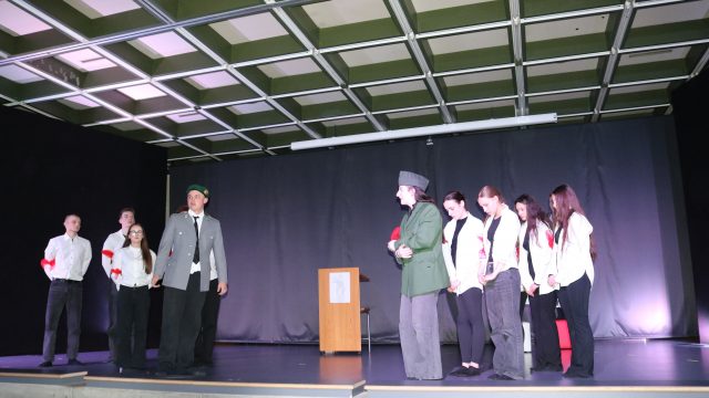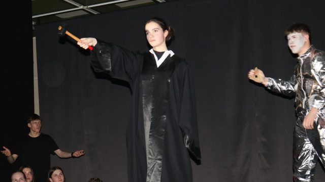 Die Wahl des Themas zeigte darüber hinaus eine interessante Facette des Faches „Darstellendes Spiel“ an sich: Diese Kurse bieten einen hohen Mehrwert, da sie weit über bloßes Theaterspielen hinausgehen. So stärken sie die Persönlichkeit, das Selbstbewusstsein und die emotionale Intelligenz der Schülerinnen und Schüler: Durch das Schlüpfen in verschiedene Rollen werden Hemmungen abgebaut, Ängste überwunden und neue Perspektiven eingenommen. Sehr deutlich zeigte sich auch die Bedeutung für Kritisches Denken und Reflexion: Themen wie Mobbing, Rollenerwartungen oder historische Ereignisse werden bearbeitet und reflektiert. Dies fördert eine kritische Auseinandersetzung mit der Welt und gesellschaftsrelevanten Themen.