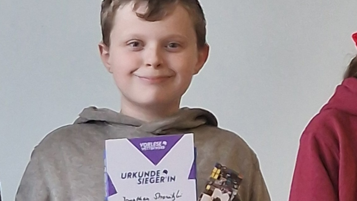 Jonathan Strowitzki aus der 6d hat den Regionalentscheid des Vorlesewettbewerbes, der in der Dietrich-Bonhoeffer Gesamtschule in Lich ausgetragen wurde, gewonnen. Er wird somit die Albert-Schweitzer-Schule und den Kreis in der nächsten Runde auf Bezirksebene vertreten. Die Schulgemeinde gratuliert ihm zu diesem Erfolg ganz herzlich.