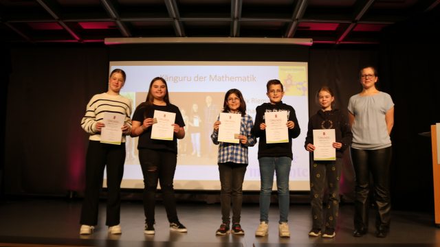 Und was das war, präsentierten Bolduan und seine Kolleginnen und Kollegen aus dem Schulleitungsteam mit großer Freude. Zwanzig verschiedene Aktivitäten, Aktionen und besondere Dinge bekamen die Gäste an diesem Abend zu sehen. Die Ausgezeichneten erhielten eine Urkunde und „einen Albert“ – einen Magneten mit einem Zitat des Namensgebers der Schule. Den Start machte Laura Cimiotti, die in einer zwanglosen Gesprächsrunde über ihren Besuch an der Deutschen Schülerakademie berichtete. Sie ermutigte ihre Mitschülerinnen und Mitschüler, sich für eine solche Teilnahmen zu bewerben, denn neben vielen interessanten Themen, die bearbeitet werden, könne man hier viele Kontakte knüpfen. Bolduan blickte zurück auf die Abi-Wald-Baumpflanzaktionen, die zu einer Tradition der Abi-Jahrgänge geworden sind und ehrte gemeinsam mit Steffen Kaiser die „Boulderinnen“ der Woche, die sich mit herausragenden „Kletter-Rätseln“ an der Boulderwand hervorgetan haben. Ebenfalls im Bereich Sport zeichnete Alexandra Greifenhagen die Mountainbike-Gruppe aus, die mit einem vergleichsweise kleinen Team beim Landeswettbewerb in Ober-Ramstadt viele starke Konkurrenten hinter sich gelassen hatte.