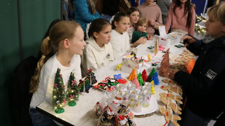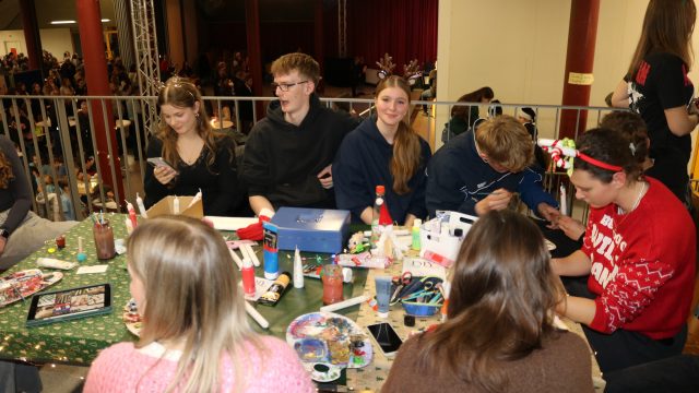 Erstmals fand in diesem Jahr ein Wintermarkt an der Albert-Schweitzer-Schule statt. Als Location hierfür hatte die Schulgemeinde die Aula des Oberstufenstandorts in der Krebsbach ausgesucht, und dort herrschte von Anfang an großes Gedränge. Kein Wunder: Das Angebot war riesig und die Stimmung ausnehmend gut. Fast alle Klassen hatten sich etwas zur Unterhaltung und zum Kaufen für die vielen Gäste einfallen lassen: Von Hundekeksen über Bücherflohmarkt und Bastelangeboten bis hin zu Upcycling und Misteryboxen war alles vertreten, was das weihnachtlich Herz erfreuen konnte. Die Aula glitzerte und strahlte und es duftete weihnachtlich nach Crêpes und Popcorn.